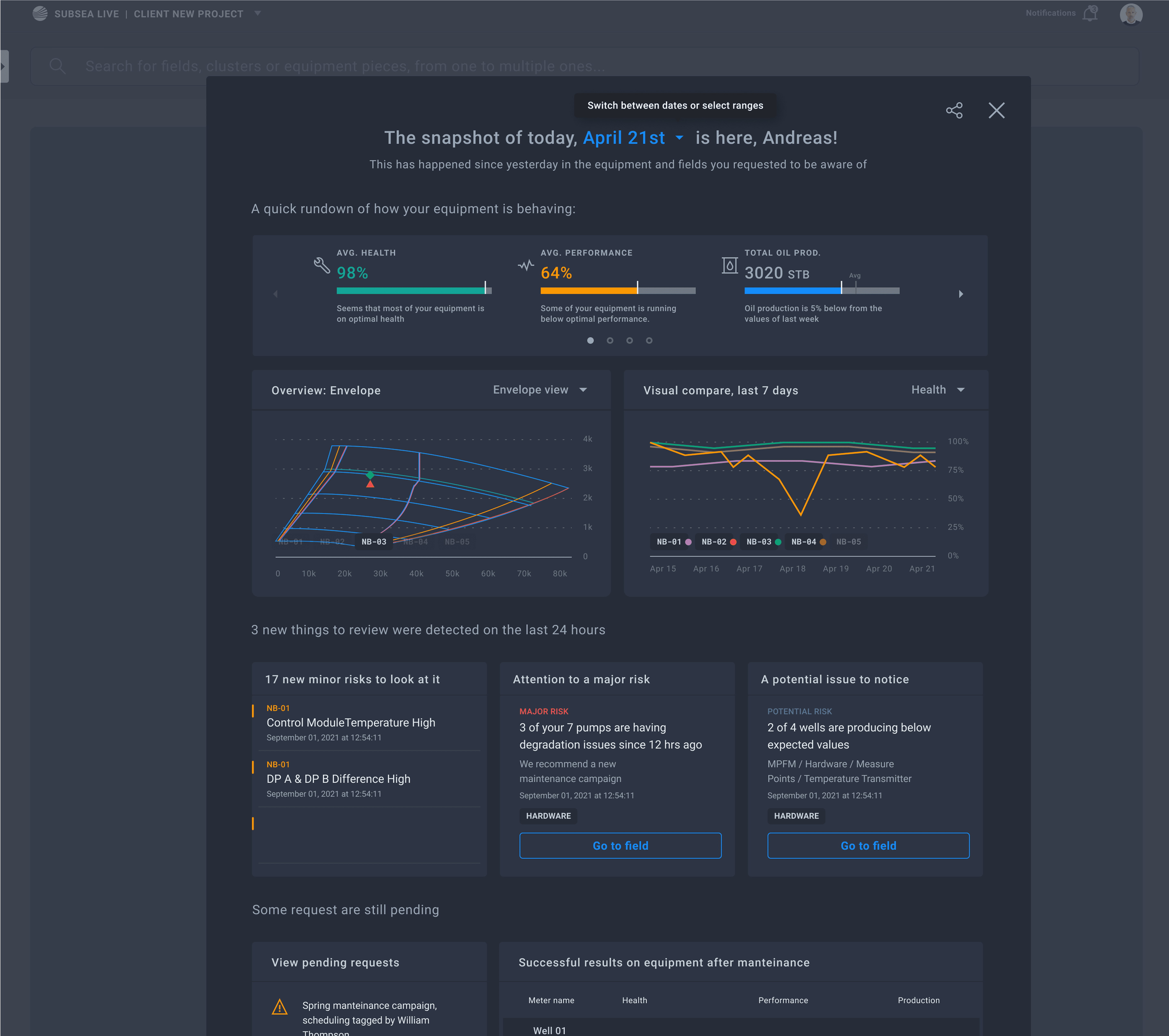 After our validation and prioritization efforts I arranged the most valuable and executable concepts into hero screens that would help OneSubsea build an MVP that will drive business and exceed users expectations